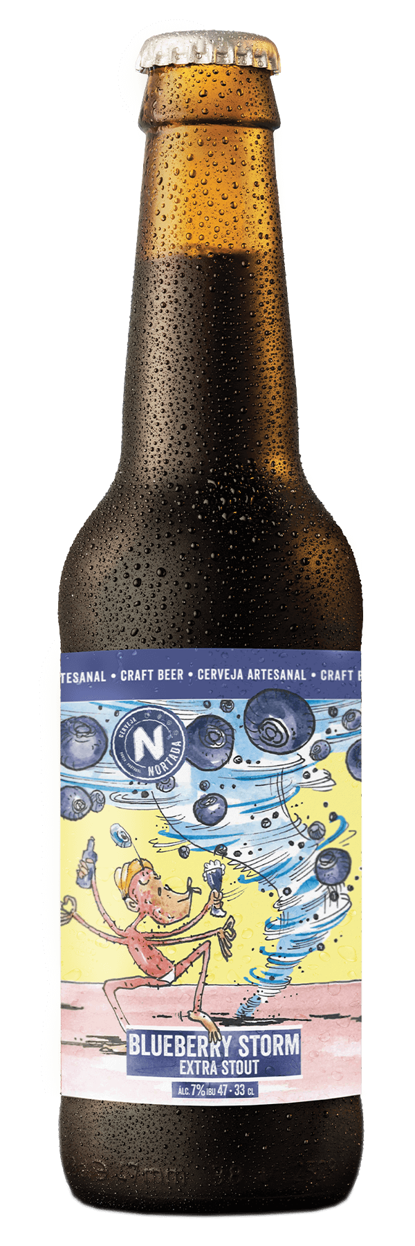Os macacos tanto dançaram que o céu lhes trouxe a Blueberry Storm! Assim nasce uma Extra Stout encorpada e carregada de mirtilos, com notas de malte torrado e amargor equilibrado. Agarra esta tempestade de sabor e toca a soltar a macaca!