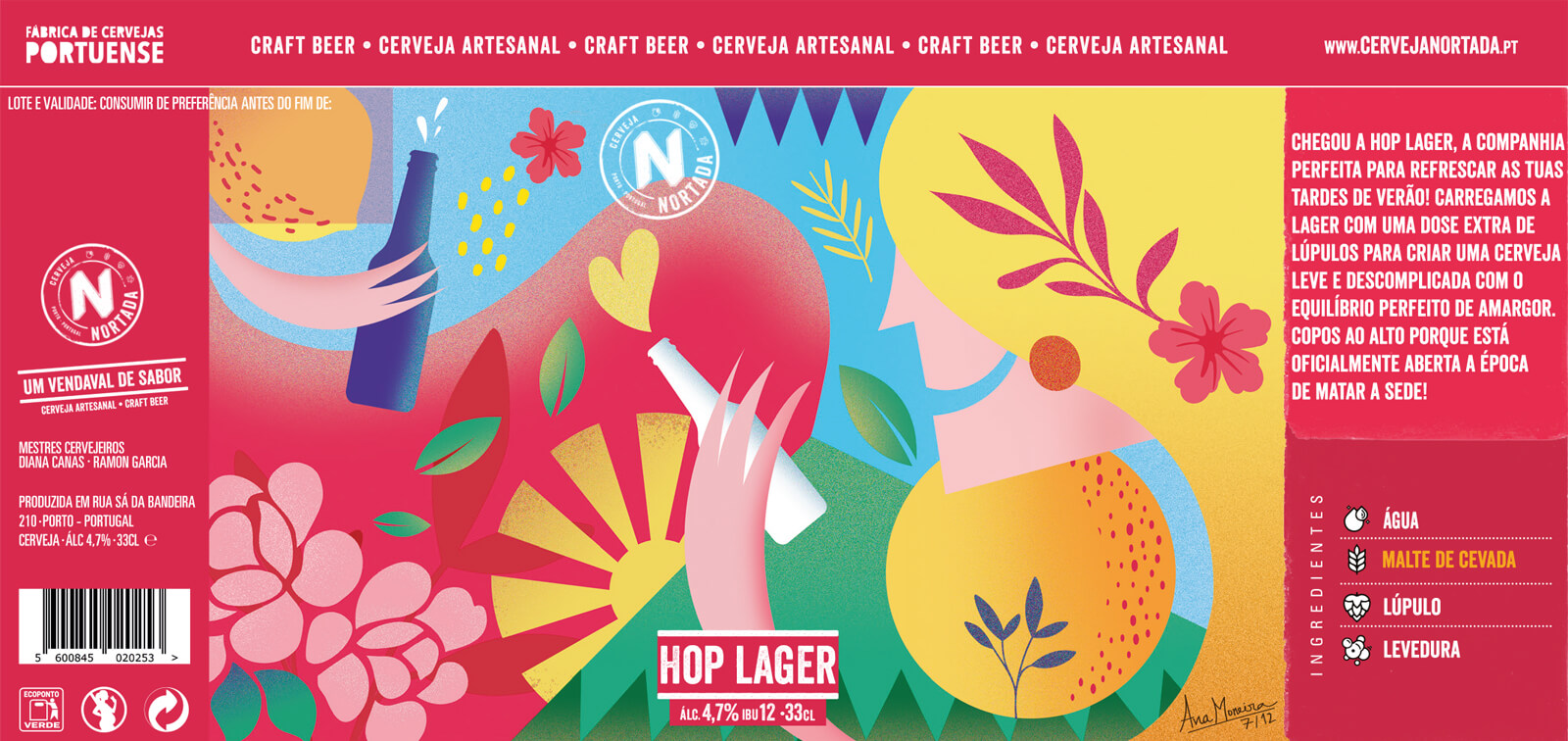 Sou uma mulher do norte e com muito orgulho! Trabalho em Lisboa mas as saudades de uma boa nortada já apertavam o coração... Até que me lançaram o desafio de desenhar a Hop Lager. Uma cerveja artesanal, leve, com notas florais e um tom suave de frutos tropicais. O Verão perfeito numa só garrafa. O desafio perfeito para recordar a minha grande cidade.⁠