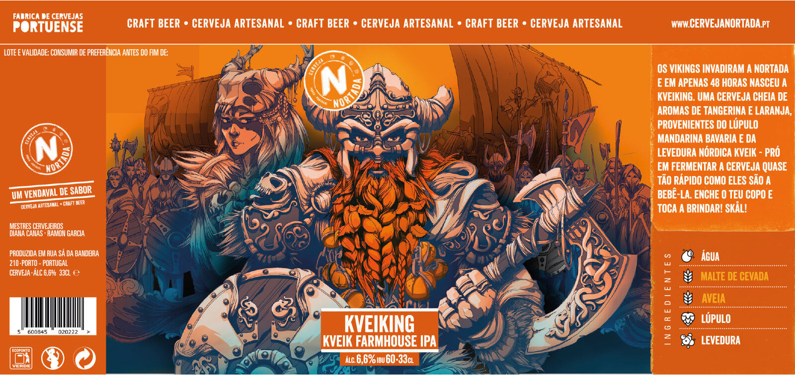 Os Vikings invadiram a Nortada e em apenas 48 horas nasceu a Kveiking. Uma cerveja cheia de aromas de tangerina e laranja, provenientes do lúpulo Mandarina Bavaria e da levedura nórdica Kveik - pró em fermentar a cerveja quase tão rápido como eles são a bebê-la. Enche o teu copo e toca a brindar! Skål!