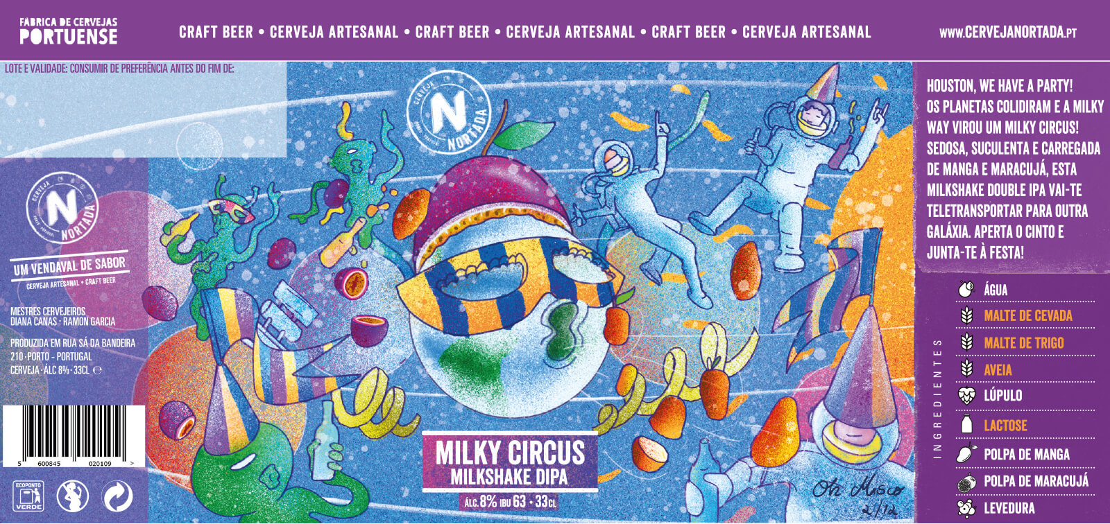 Houston, we have a party! Os planetas colidiram e a Milky Way virou um Milky Circus! Sedosa, suculenta e carregada de manga e maracujá, esta Milkshake Double IPA vai-te teletransportar para outra galáxia. Aperta o cinto e junta-te à festa!